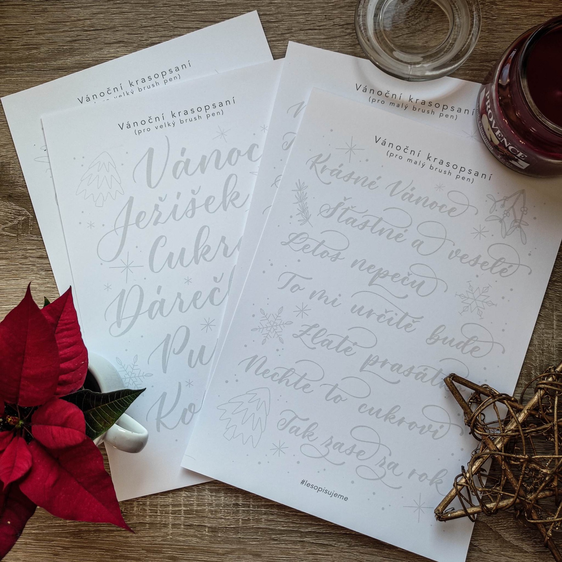 - Bonusové vánoční krasopisné listy pro velký i malý brush pen
