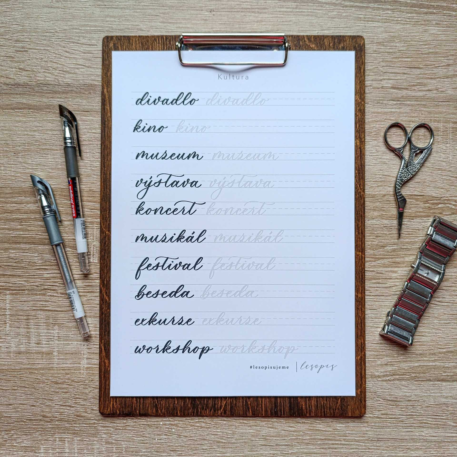 Písanka je navržena pro psaní malým brush penem a pomůže ti trénovat kontrast mezi tenkými a širokými tahy. Šablony jsou digitální ve formátu PDF, které ti po úhradě objednávky zašleme na e-mail. Doporučujeme tisk na vysokogramážní hlazený papír.