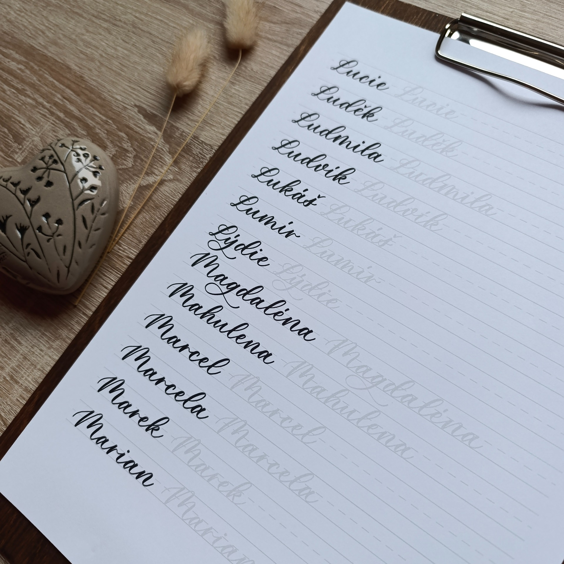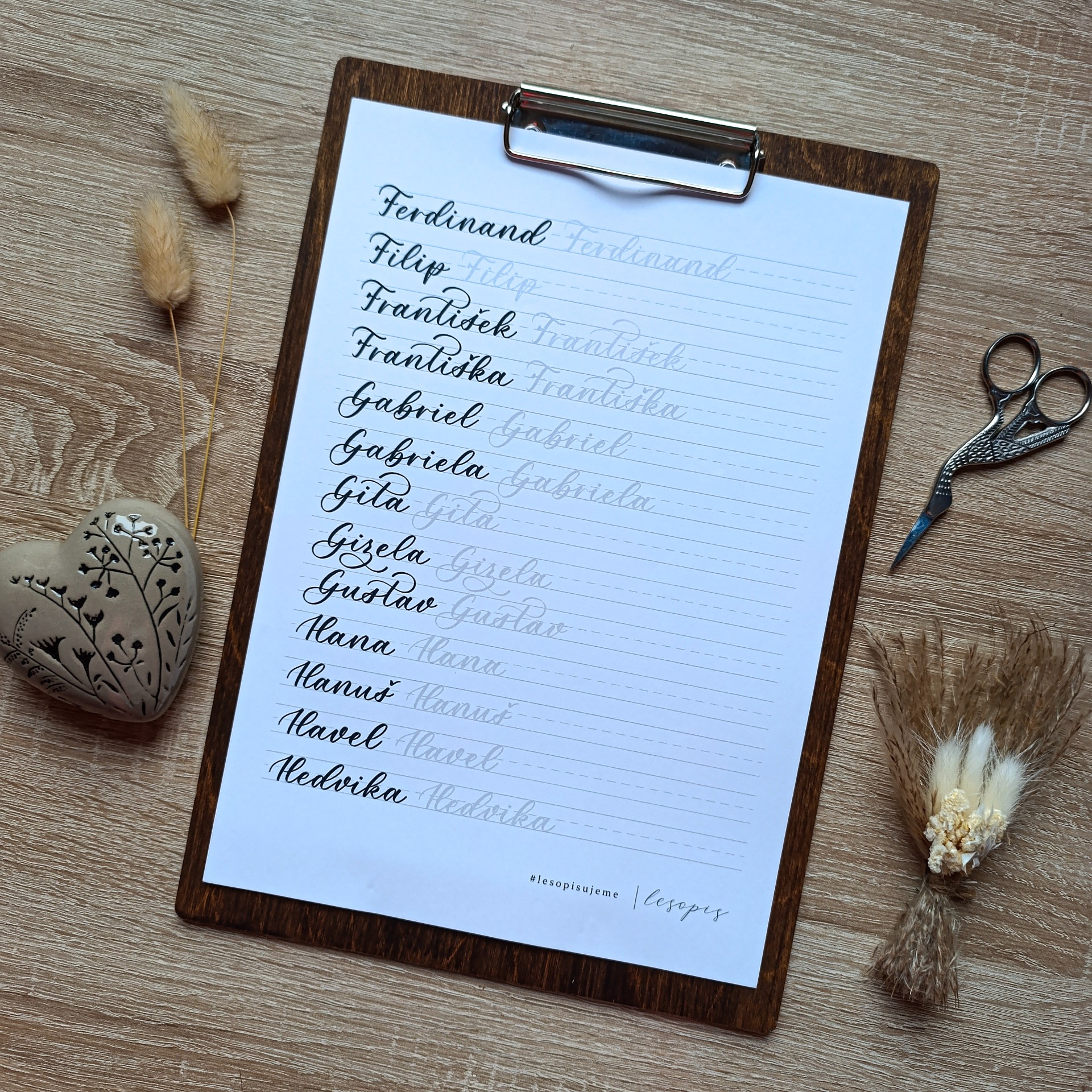 Písanka přináší 30 stran všech jmen českého kalendáře seřazených abecedně, aby ses v nich mohl(a) rychle orientovat. PDF si můžeš tisknout opakovaně a využít ho při tvorbě vánočních jmenovek, svatebních kartiček, narozeninových přání, nebo jednoduše jako tréninkový materiál pro zlepšování vlastního rukopisu.