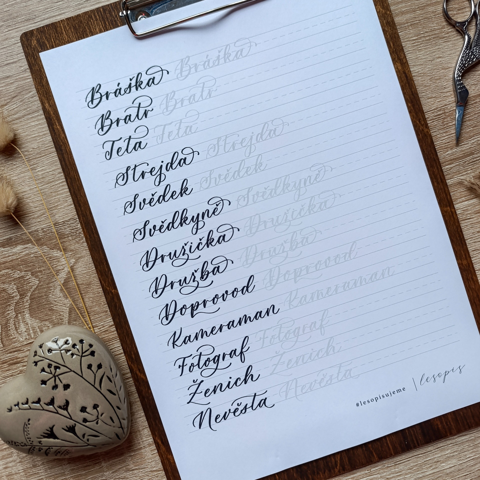 Vytvoř si krásně psané jmenovky, přání i drobné dekorace bez dlouhého vymýšlení, jak jednotlivá jména vlastně napsat. Tahle písanka ti nabídne klidný prostor pro trénink kaligrafie i praktickou pomůcku pro tvoření na jakoukoli příležitost.